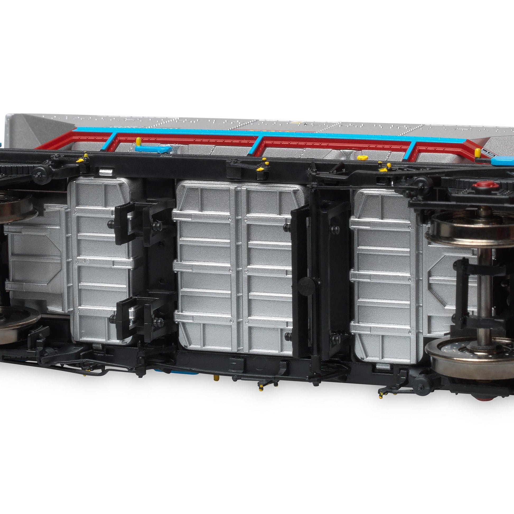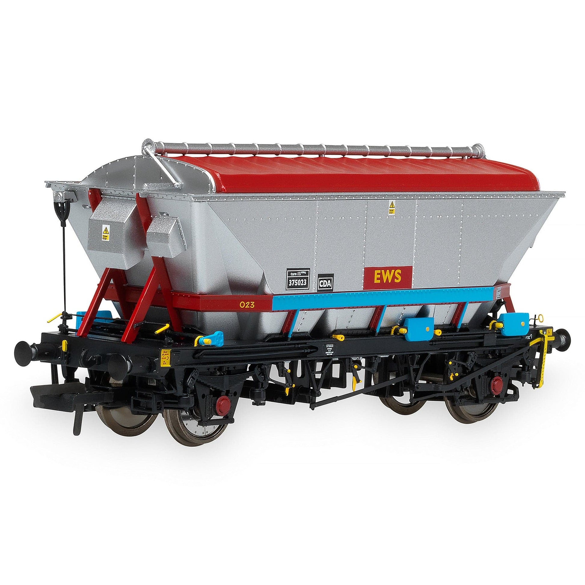 * CDA correctly features large end air cylinder and above solebar mounted brake distributor, end ventilator boxes, highly detailed roof with textured canvas cover and chassis mounted operating handles