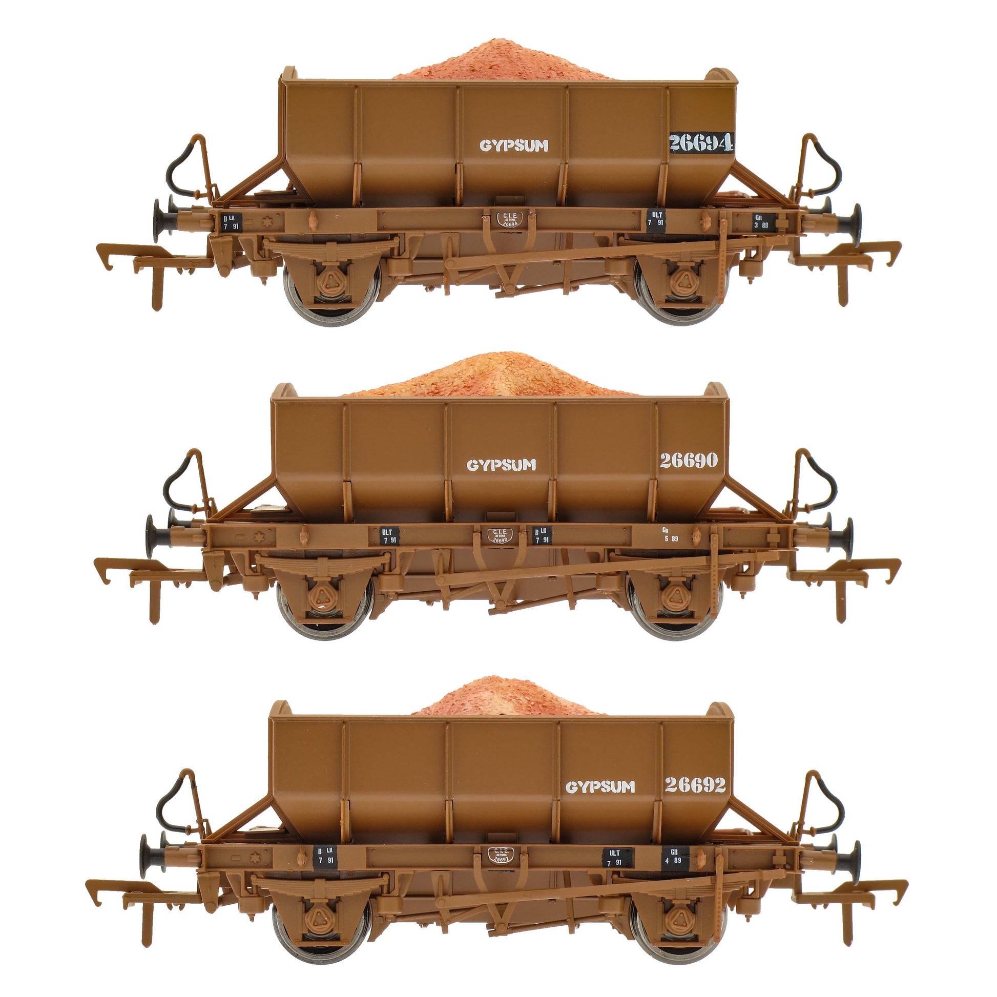 A triple pack of CIE / Irish Rail Two-axle Gypsum Ore Hoppers - Pack D