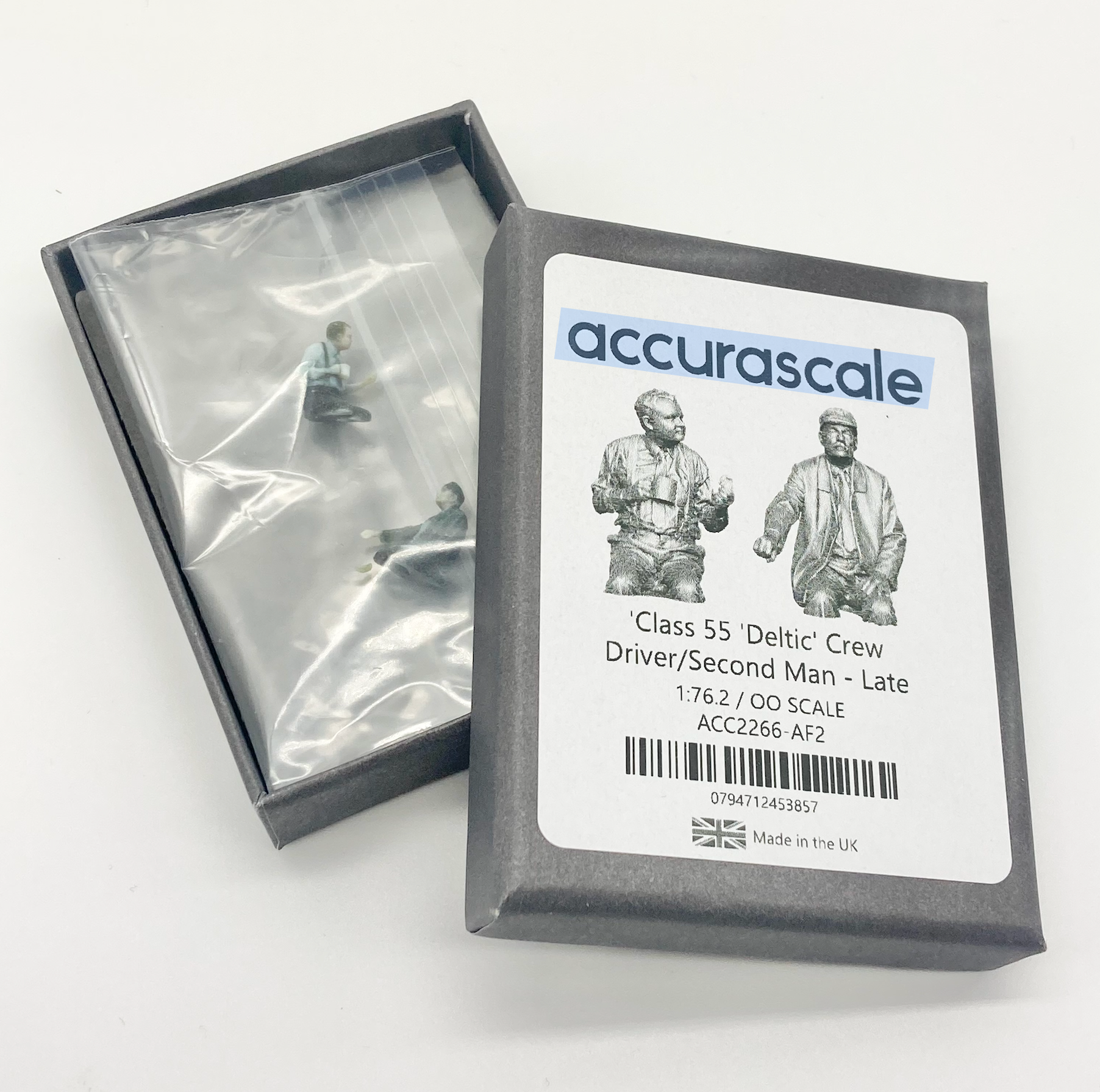 Utilising the latest in full-colour 3D scanning and printing technology, these figures are designed and produced in the UK specifically for the Accurascale class 55 'Deltic'. Printed in full colour. No painting required; a first for RTR OO Scale! Simply carefully remove the Deltic bodyshell and glue into place.